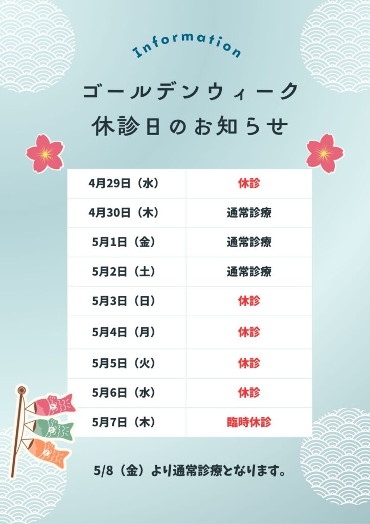 ゴールデンウイークのお知らせ